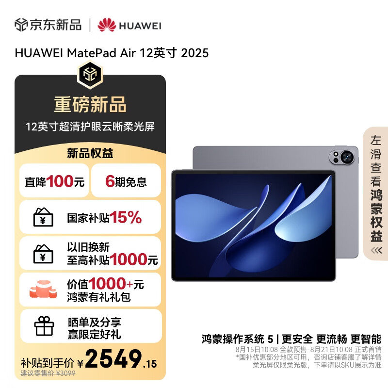 华为 MatePad Air 2025 款 / 11.5 S 平板今日开售,2799/2099 元起华为 MatePad Air 2025华为 MatePad 11.5 S华为平板