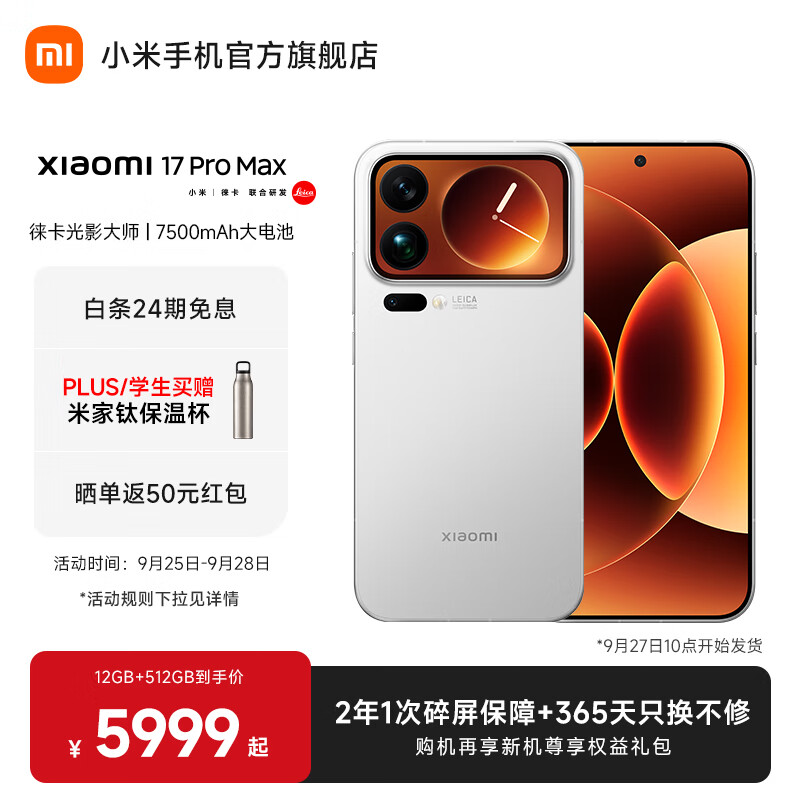 9 月 27 日消息,小米 17 / Pro / Pro Max 手机今日上午 10:00 正式开售,定价 4499 元起。IT 之家整理了各版本价格。#小米 17 系列手机开售#