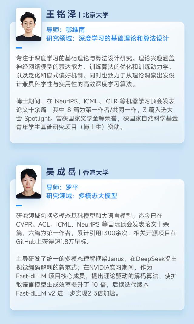 本次奖学金计划收到了来自中国、新加坡 66 所高校 500 余名同学的申请。最终,来自清华大学、北京大学、复旦大学、中国人民大学、华中科技大学、香港大学、新加坡国立大学、南洋理工大学的 20 位博士获奖,覆盖大模型、机器学习、多模态、AI Infra、机器人、AI for Science、硬件等多个研究领域。