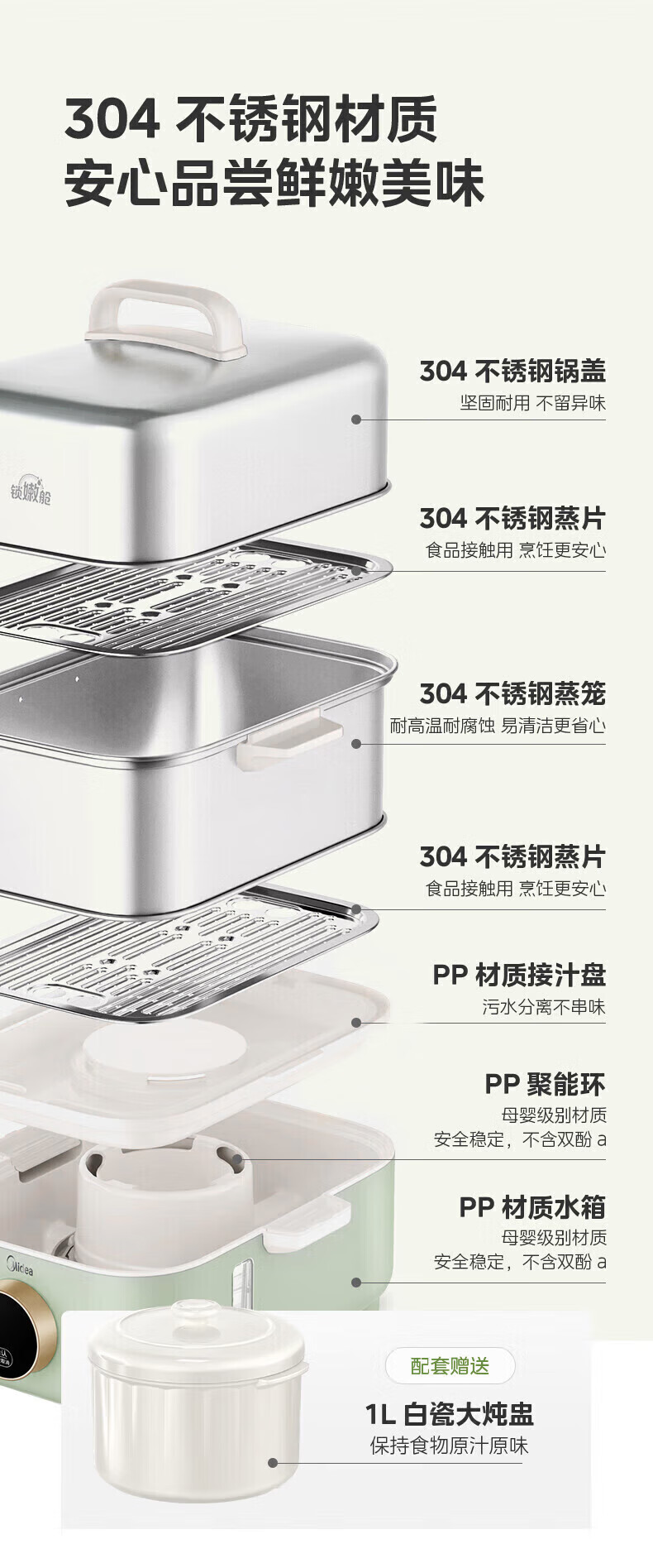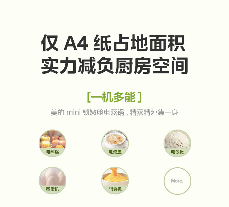199 → 80.8 元:美的锁嫩舱 2.0 智能 mini 电蒸锅京东 4 折新低厨房小家电