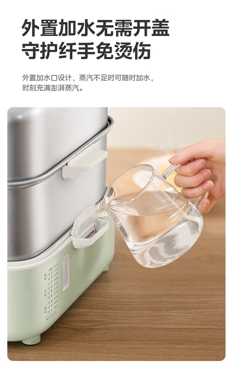 京东美的 锁嫩舱 mini 电蒸锅不锈钢双层蒸笼 20:00 折后 89.55 元直达链接此款为 mini 版本,适合 1~2 人小家庭使用。