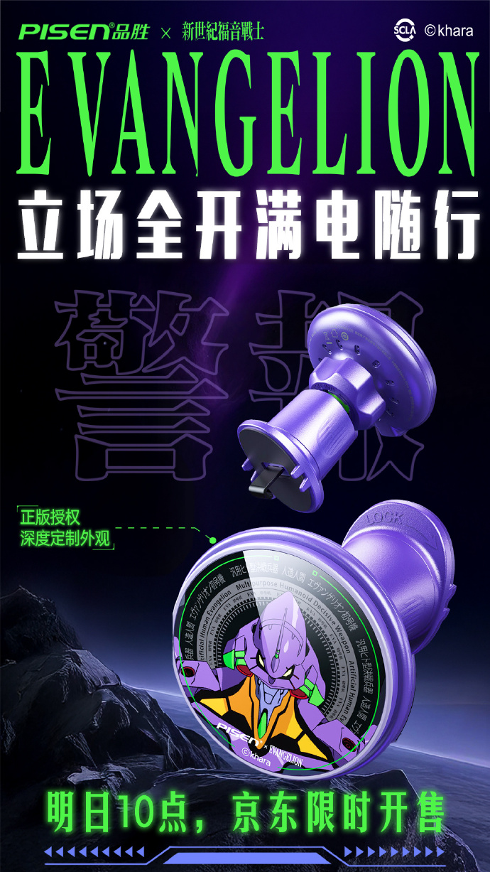 品胜官方宣布《新世纪福音战士》联名款车载无线充将于明日上午10点在京东平台限时开售。充电器采用紫色设计,印有初号机形象,背面有绿色点缀,号称“同步率400%”。#品胜# #新世纪福音战士#