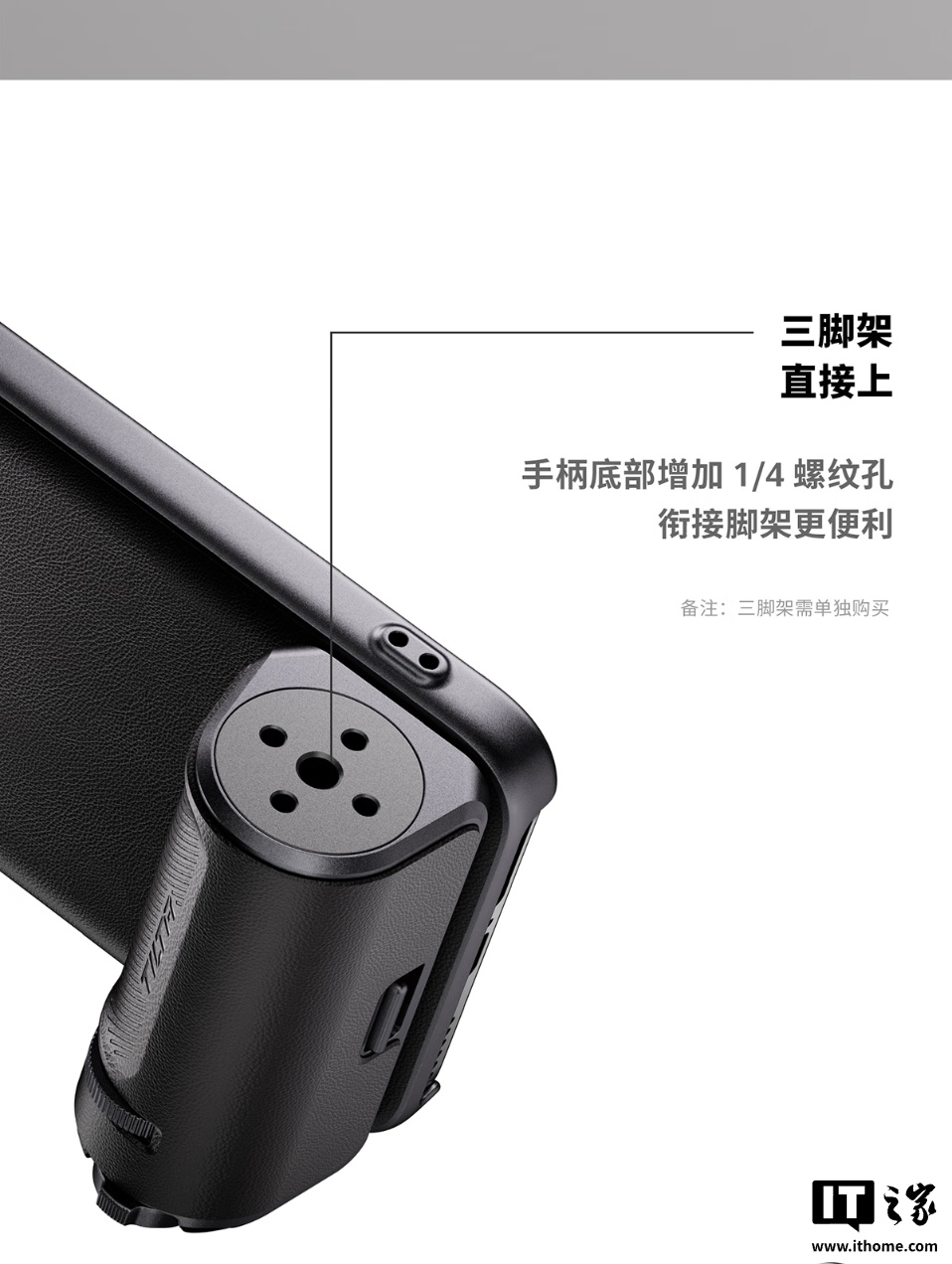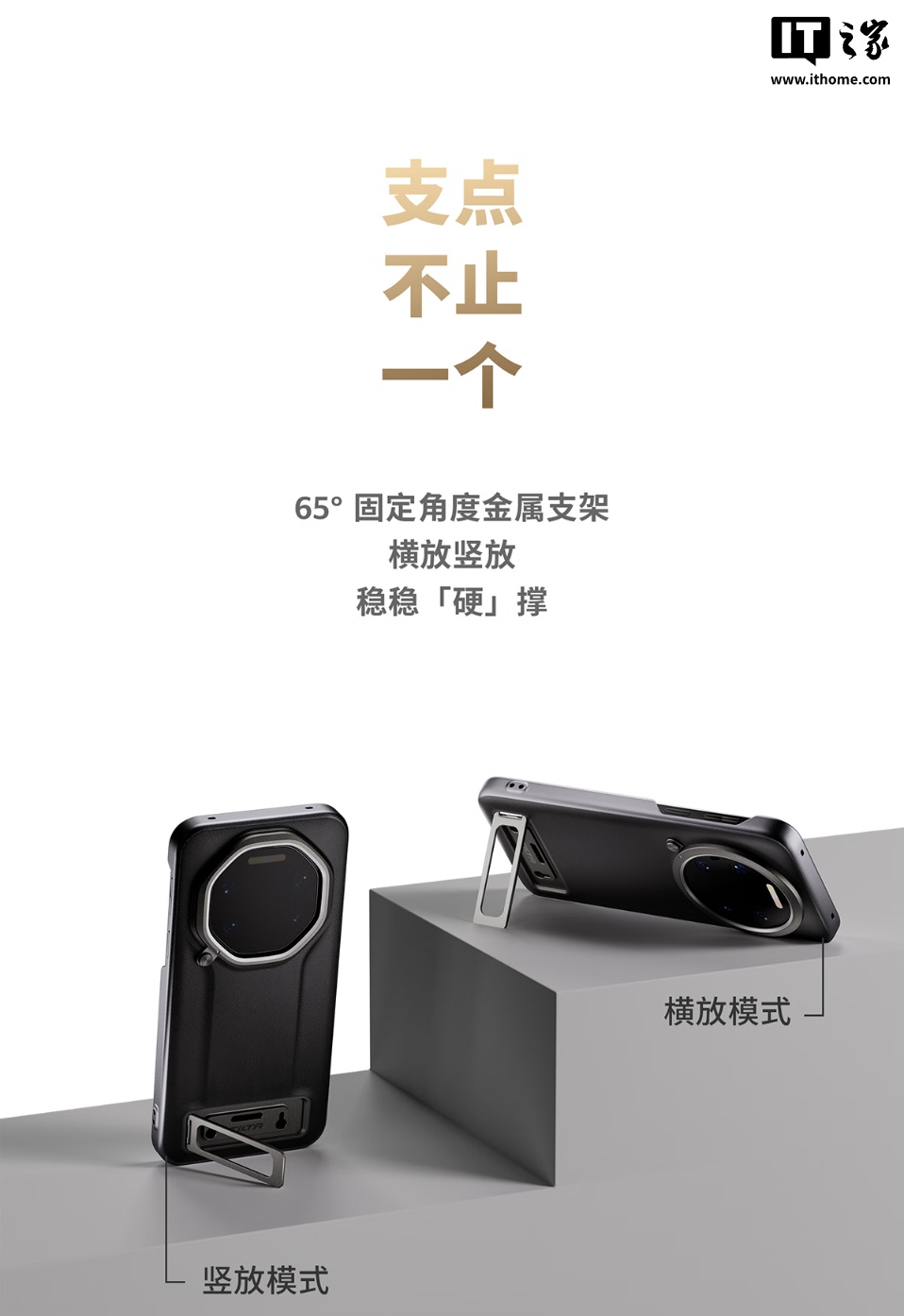注意到,这款摄影套装还带有一个多功能手机壳,自带 65° 固定金属支架,可当作手机支架使用,还拥有一个四分之一螺孔,可直接上三脚架。