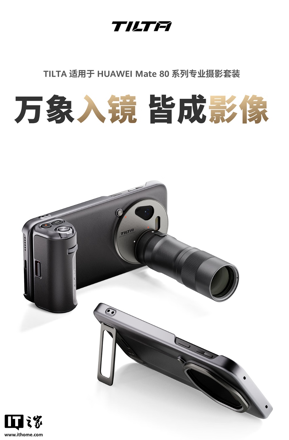 12 月 12 日消息,铁头 TILTA 华为 Mate X7/Mate 80 系列专业摄影套装现已上架京东平台,后者适配 Mate 80 Pro / Pro Max / RS 非凡大师三款机型,带有蓝牙遥控手柄、3.33X 增距镜等,均售 1699 元,不过目前还没有开售,处于无货状态。