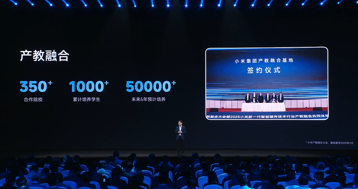 12 月 17 日消息,在今天的 2025 小米人车家全生态合作伙伴大会上,小米核心系统部总经理牛坤介绍了小米集团产教融合最新进展: