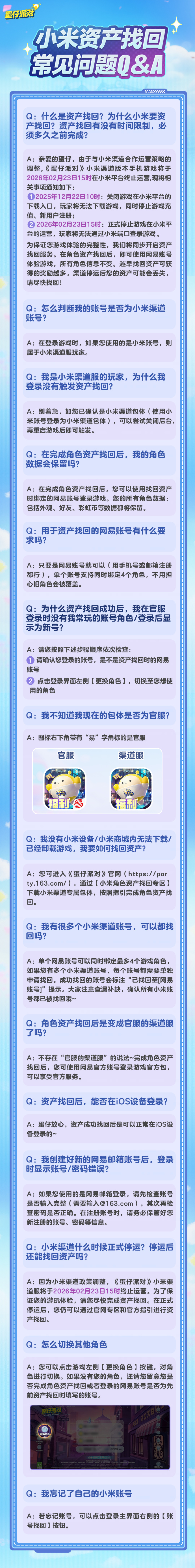 网易《蛋仔派对》小米渠道版手游 2026 年 2 月 23 日停运,开启角色资产找回服务蛋仔派对网易游戏小米