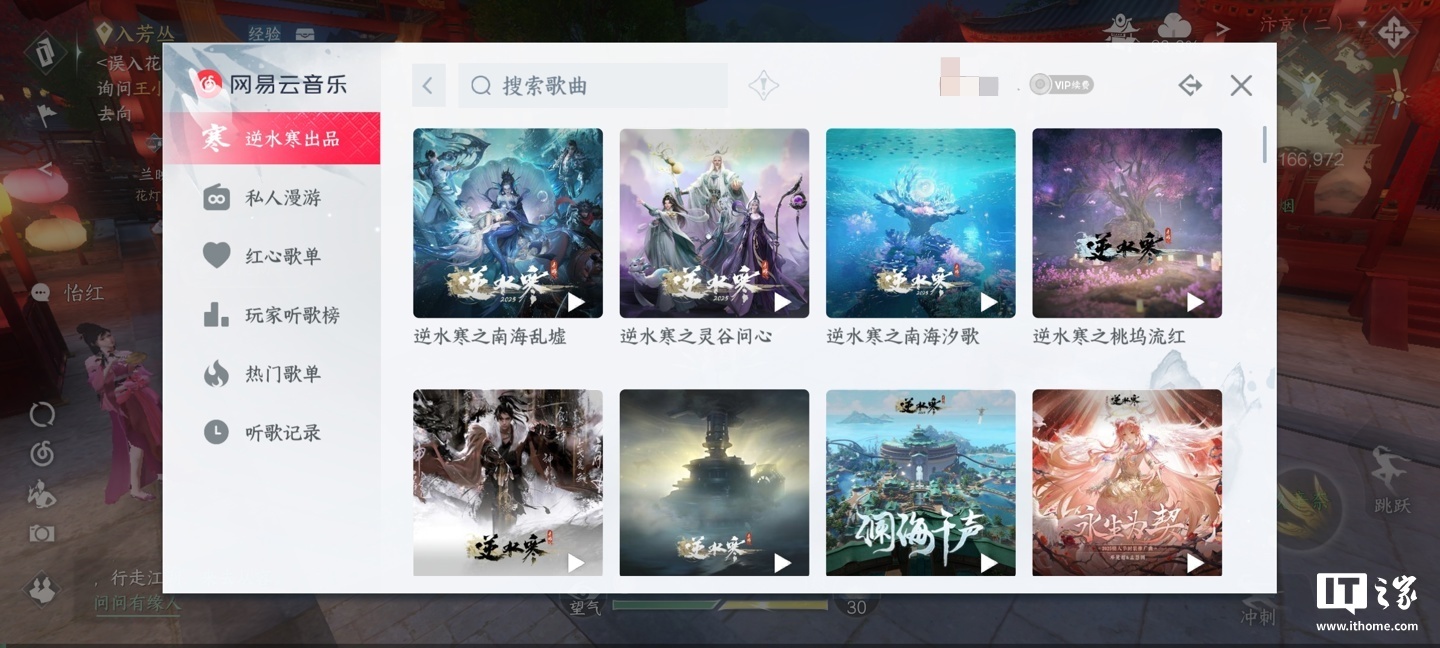 据今年 3 月报道,网易《逆水寒》手游在游戏中内置了一个网易云音乐播放器,方便玩家在游戏中听歌。