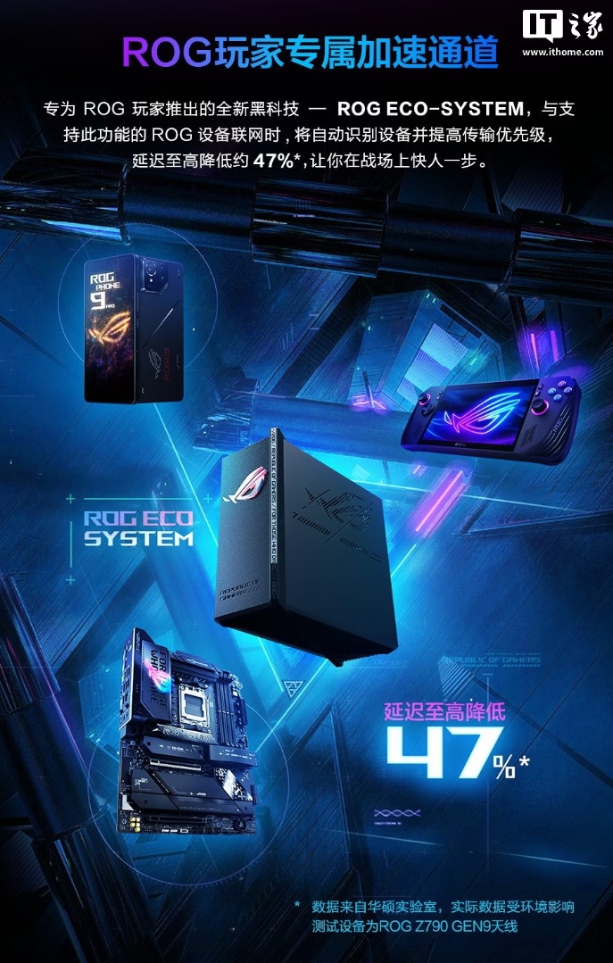 此外,这款路由器还支持“电竞专属 Wi-Fi”,无需设置就能体验到更快的游戏速度,还可在 ROG 设备联网时自动识别并提高传输优先级,让延迟最高降低 47%,支持手游加速、主机游戏加速,还兼容 AiMesh 生态,方便全屋多路由器组网。