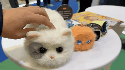 在CES场馆走了一圈,腰酸腿疼之际,看到一只毛茸茸的小猫,很难不驻足。