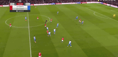 英格兰足总杯第三轮,曼联迎战布莱顿。比赛中,吕特头球被挡,格鲁达补射攻入一球,帮助球队取得领先。上半场结束,场上比分呈现为曼联 0-1 布莱顿。