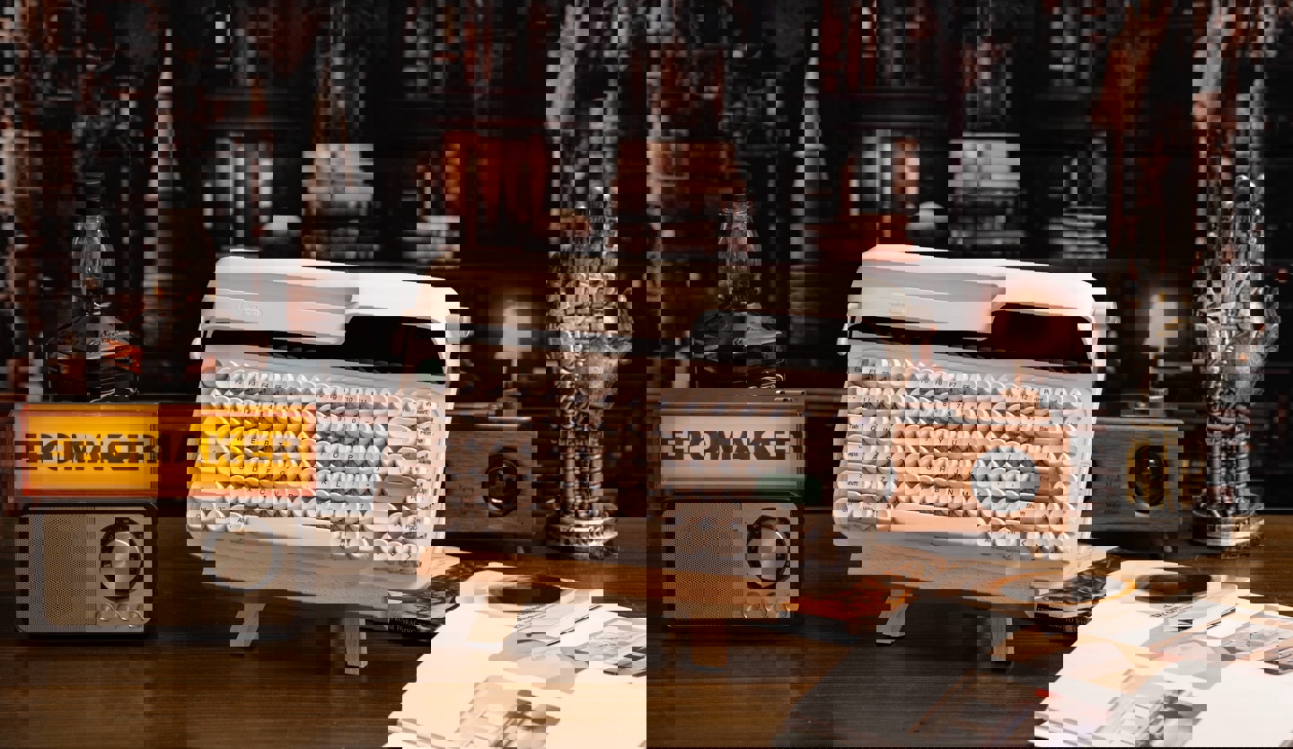 EPOMAKER 的另一款 CES 新品是 Glyph,这一型号在设计上致敬了打字机,金属拨杆元素得到了继承,还配备了多媒体金属旋钮和后部灯箱。