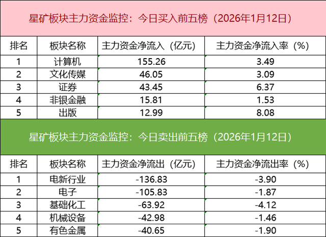 从主力板块资金监控数据来看,计算机板块主力资金净流入居首。