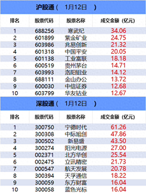 从沪股通前十大成交个股来看,寒武纪位居首位;紫金矿业和兆易创新分居二、三位。