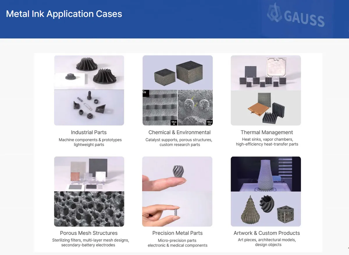 MetalPrinting 为该设备开发了名为“GaussInk”的专用墨盒系统,用户可像更换普通打印机墨盒一样便捷操作。目前已知支持的材料包括不锈钢、铜、钛、镍、铁以及钨等金属。