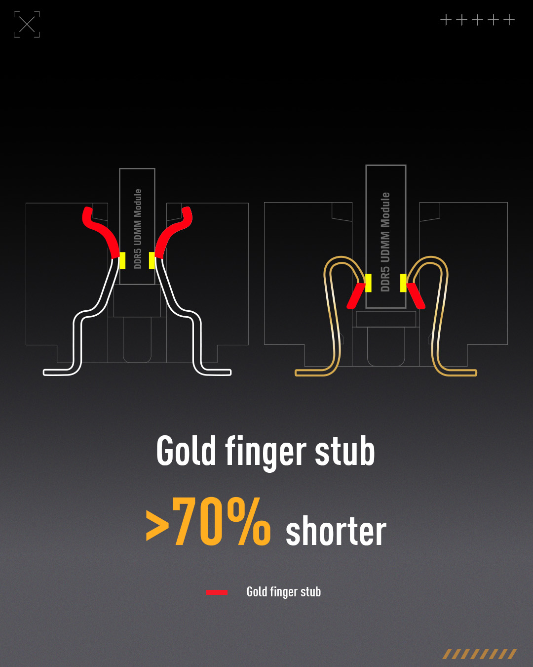具体来看数据,NitroPath 提供了额外 400MT/s 的内存超频空间,金手指针脚缩短>70%,插槽保持力增强至多 57%。