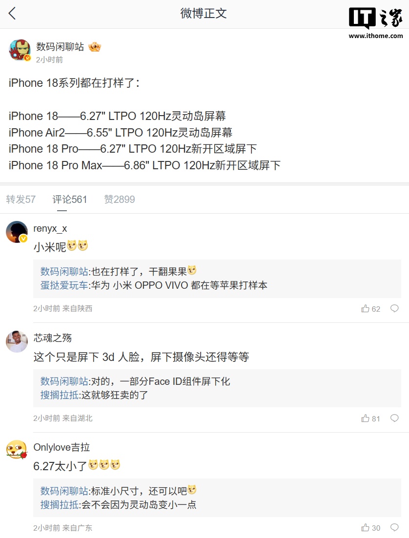 苹果 iPhone 18 系列、Air2 屏幕配置曝光,部分 Face ID 组件屏下化iPhone 18iPhone Air2