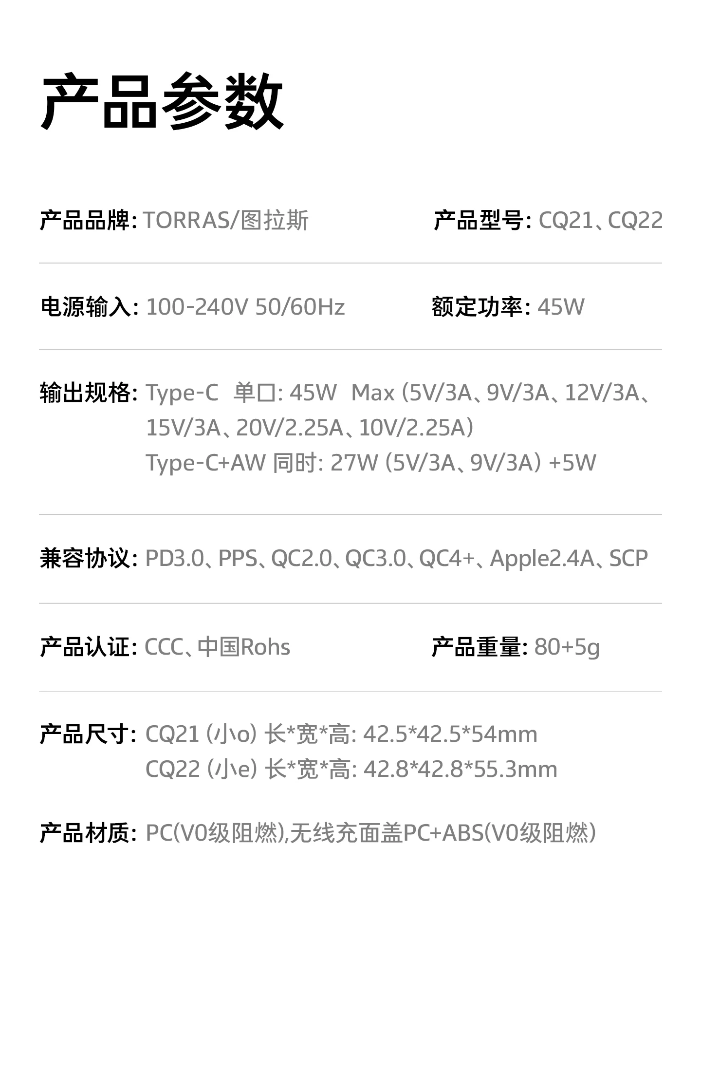 京东图拉斯 大眼仔充电器多合一快充 45W 加购物车 1 件直达链接