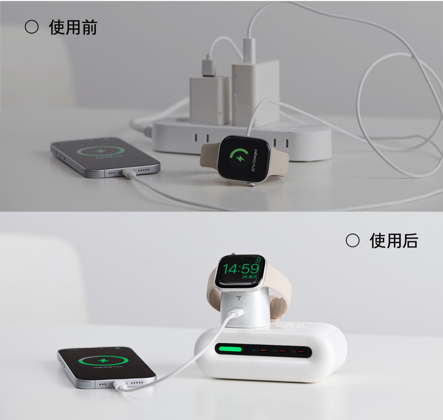 支持 Apple Watch 磁吸快充 + 系列满速线充: