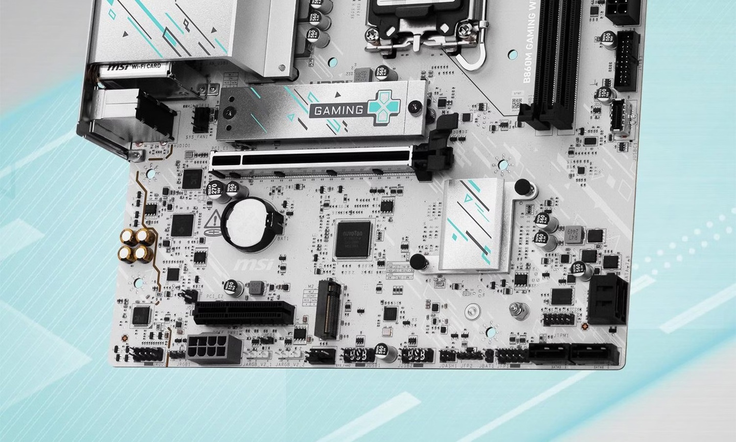 京东微星(MSI)B860M GAMING WIFI1199 元直达链接从商品页面获悉,这款主板采用 LGA1851 插座,支持英特尔酷睿 Ultra 台式机处理器(第二代),采用 6 层服务器级 PCB、2oz 加厚铜、8+1+1+1 路智能供电设计、8 pin 供电、扩展型 VRM 散热片、7W/mK 导热垫片、M.2 冰霜铠甲、南桥散热片。