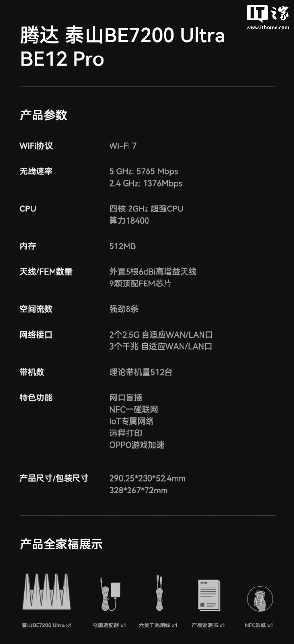 腾达泰山 BE7200 Ultra 路由器开售:五天线设计 + 9 颗 FEM,首发价 429 元泰山 BE7200 Ultra 路由器腾达泰山 BE7200 Ultra