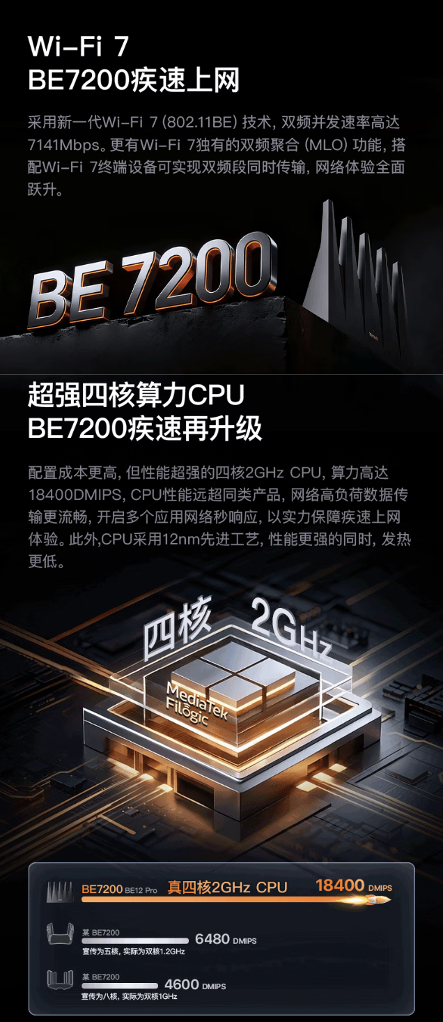 腾达泰山BE7200 Ultra Wi-Fi 7路由器今晚8点京东首销,首发价429元。它采用五天线设计,双频并发速率达7141Mbps,配四核2GHz CPU和双2.5G口,号称挑战7200性价比之王。#WiFi7路由器##数码好物#
