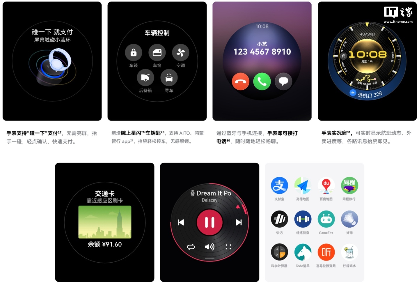 HUAWEI WATCH GT 6 Pro 智能手表还支持支付宝碰一碰支付、腕上星闪车钥匙、蓝牙接打手机电话、手表实况窗、交通卡、音乐播放、第三方 App 安装使用等。