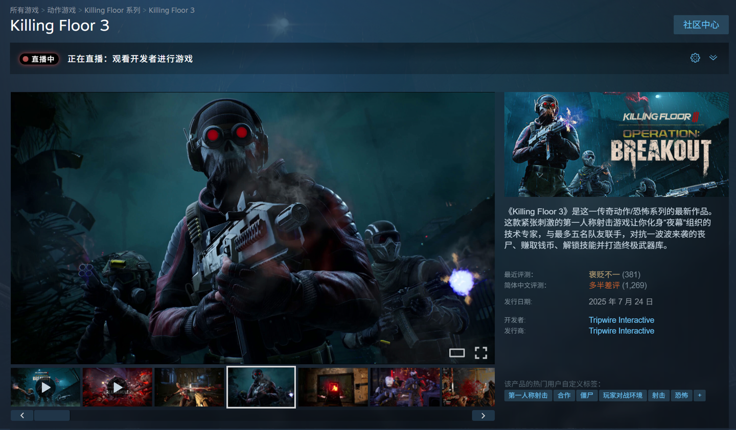 Gibson 以《杀戮空间 3》(Killing Floor 3)为例佐证其观点。这款游戏耗时整整五年才完成开发,且在 2025 年 7 月发布后市场反响褒贬不一。