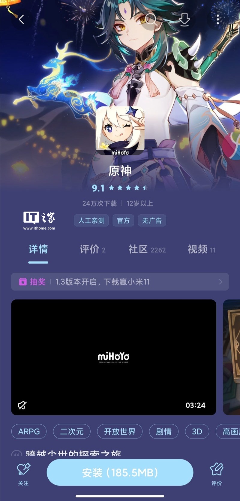 据此前报道,2021 年 2 月,米哈游旗下《原神》上架小米应用商店。根据下载之后的登录情况看,为小米的渠道服版本,也是第一个手机厂商应用商店的渠道服。