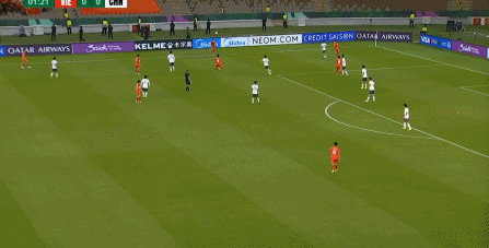 到了另外一边的二防二场景里,越南队进行换位,但右翼卫杨希在兼顾位置的同时,看准时机坚决前顶,便重新夺回了球权: