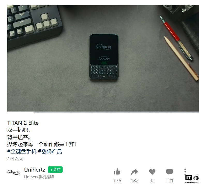 1 月 21 日消息,国产迷你手机厂商 Unihertz 今日预告了一款全键盘手机新品 —— Unihertz Titan 2 Elite。