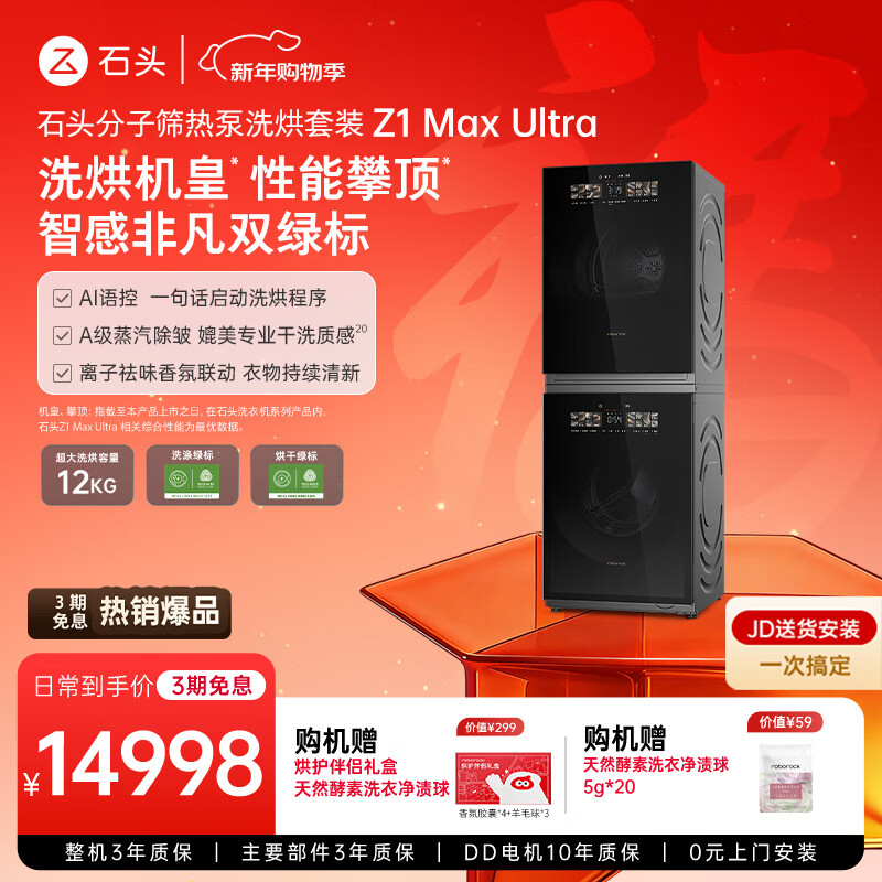 京东石头 分子筛热泵洗烘套装 Z1 Max Ultra 以旧换新 10080 元直达链接官方对比