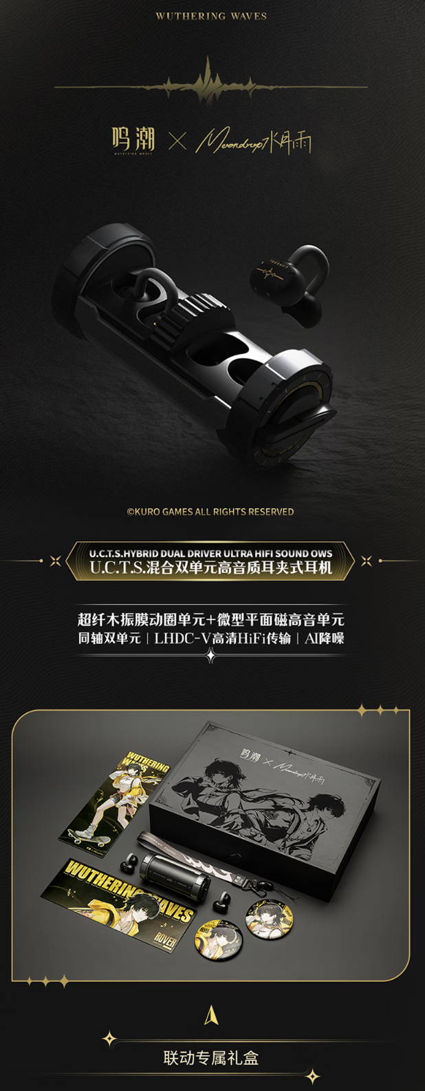 鸣潮 × 水月雨联动 U.C.T.S. 耳夹式蓝牙耳机预售:提供镭射票、徽章周边,299 元水月雨鸣潮