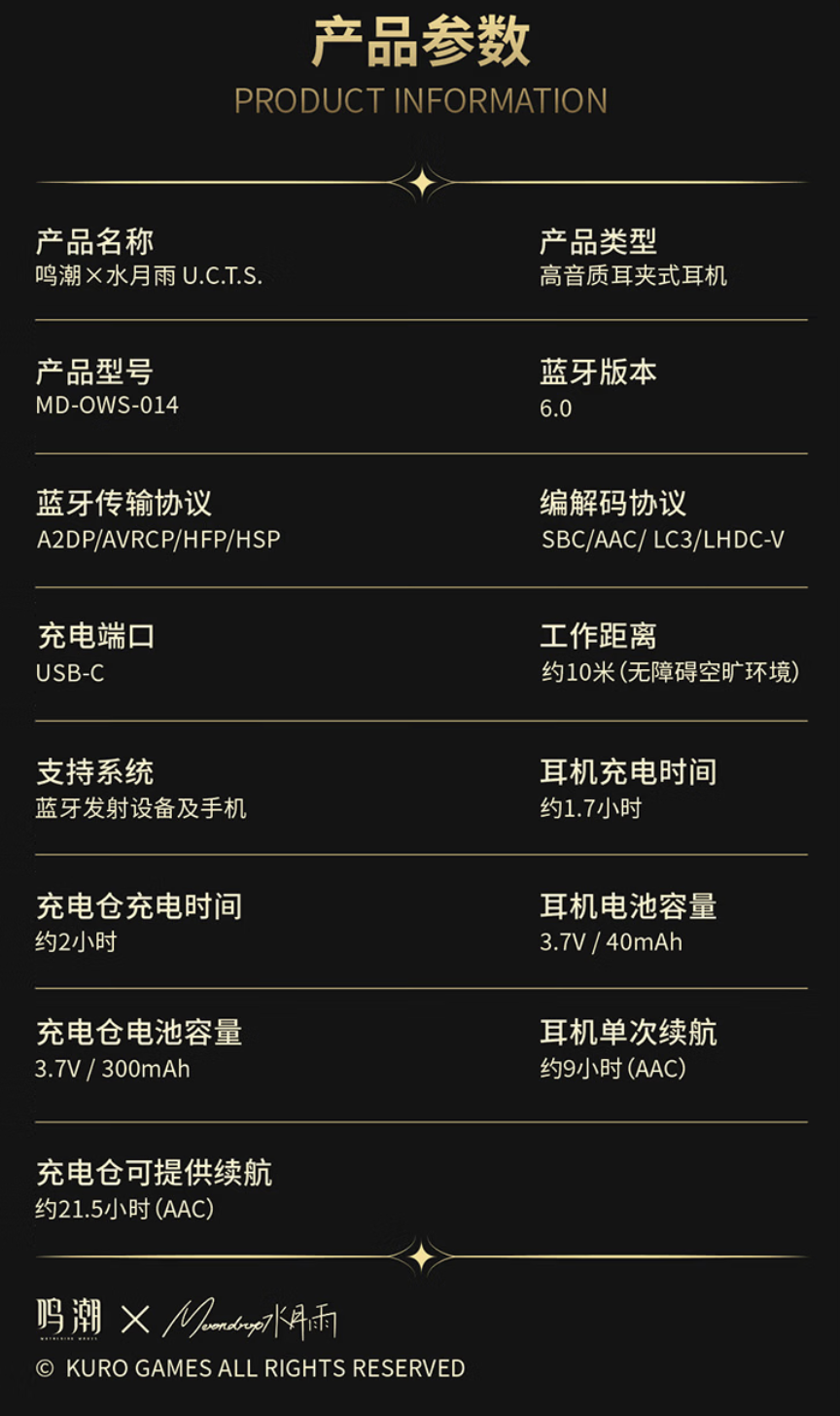 京东水月雨 × 鸣潮联动 U.C.T.S. 耳机 299 元直达链接