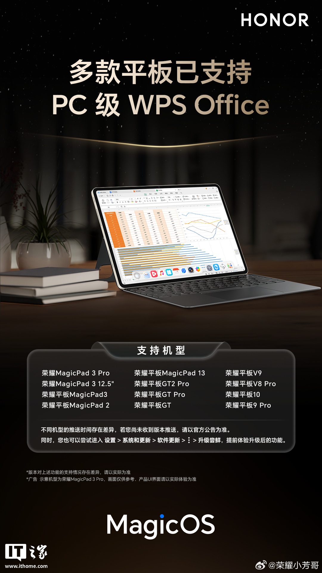 参考此前报道,已支持 PC 级 WPS Office 的荣耀平板如下: