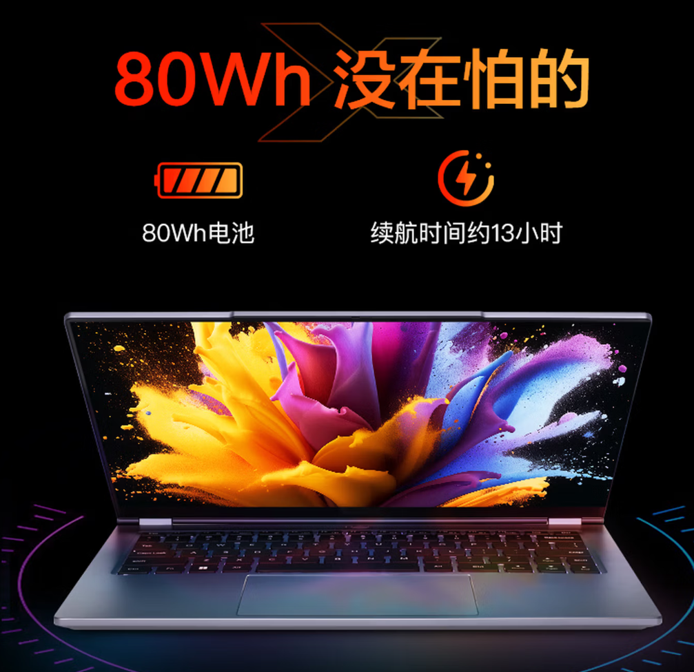 设计方面,这款笔记本搭载 80Wh 电池,续航约 13 小时,配备 14 英寸 2880*1800 屏幕,支持 120Hz 高刷,覆盖 100% sRGB 色域,标配 32GB DDR5-5600MT/s 大内存,拥有双 M.2 2280 硬盘位,至高可扩展至 96GB+8TB,售价 4599 元。