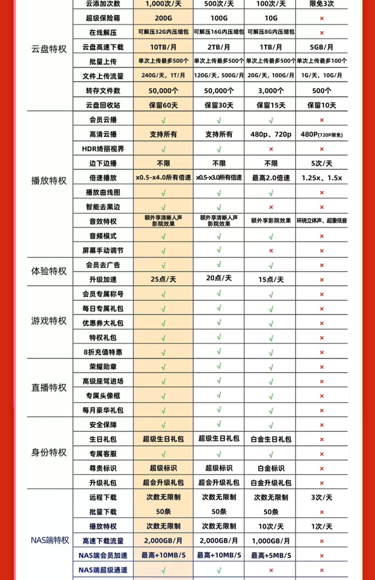 迅雷白金会员、超级会员权益对比:点此查看官方详解。