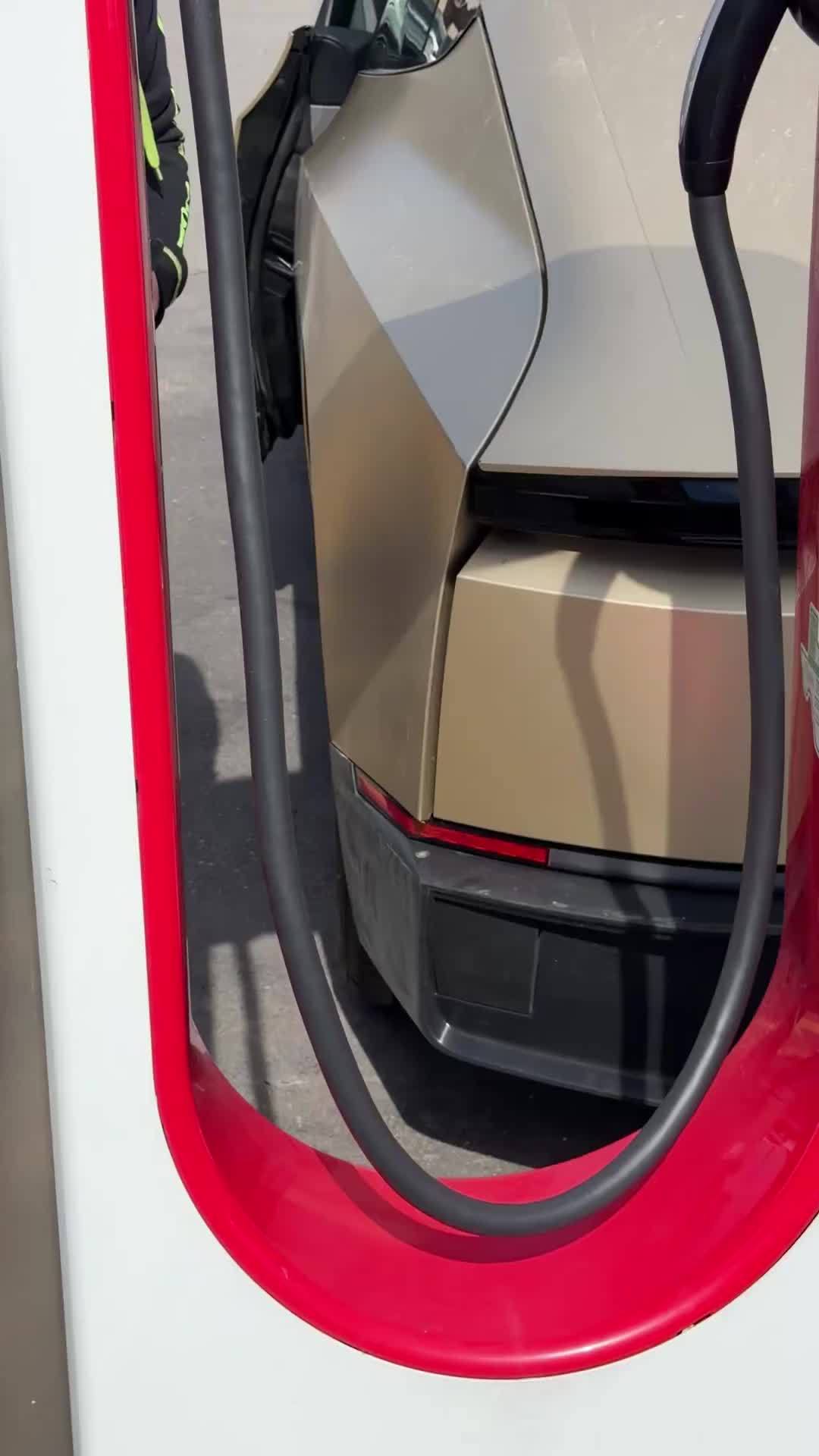 在最新曝光的视频中,一辆 Cybercab 原型车的尾部赫然出现了一个手动充电接口,视频清晰展示了工作人员打开后盖、将超级充电枪插入接口的过程,这一“手动”细节与该车“全自动”的定位形成了鲜明反差。附上相关视频如下: