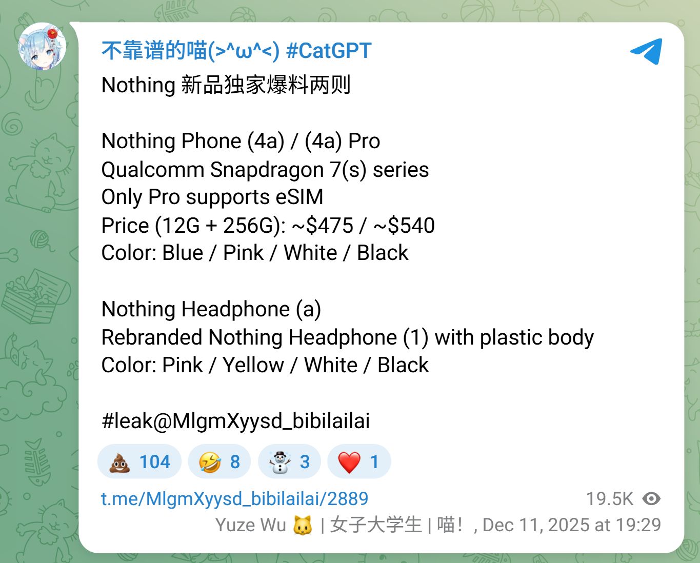 考虑到这两款型号之间存在明显的价格差距,billbil-kun 认为这款耳机并不是 Headphone (1) 的简单换皮。不过我们还是需要等待官方公布才能得知其明确参数。