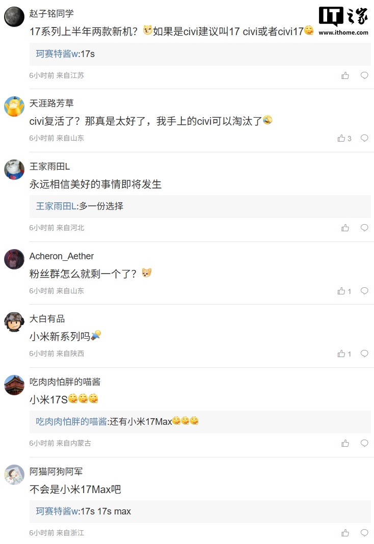 按照该博主此前的爆料习惯,这款新机预计为小米旗下产品。对于该机的具体名称以及所属系列,该博主暂未透露,评论区有网友猜测是小米 Civi 系列或小米 17s,还有网友猜测是小米新系列,具体名称还有待官方公布。