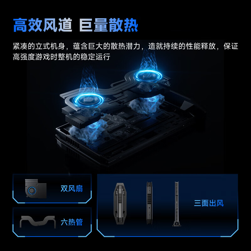 规格方面,这款迷你主机搭载英伟达 RTX 5070 Laptop 显卡,拥有 6 根热管、双风扇以及三面出风散热系统,开启游戏模式时,整机功耗可达 200W,而在办公模式下,功耗上限则是 150W。