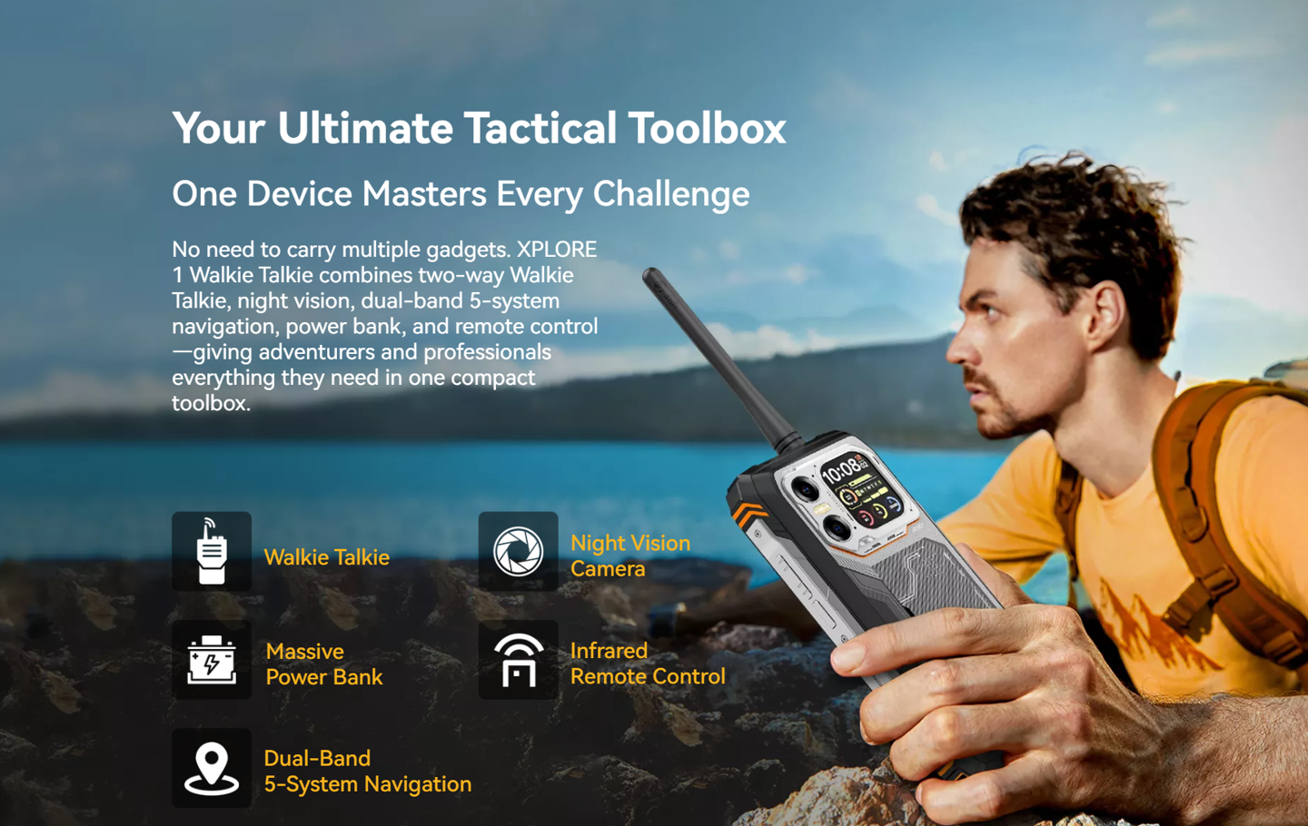 Blackview发布Xplore 1户外手机,最大亮点是内置对讲机功能,无需蜂窝网络即可通话,空旷环境对讲距离达20公里。它还配备天玑7050芯片、20000mAh超大电池及IP69/MIL-STD-810H防护,堪称户外神器。#户外手机# #黑科技#