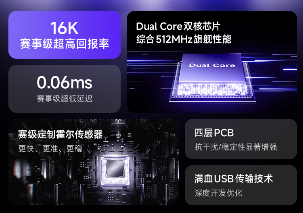 官方强调,该键盘采用迈从全自研“天问”方案,号称实现了全球首款 16K 回报率,提供 0.06ms 赛事级延迟、0.001mm 精度。