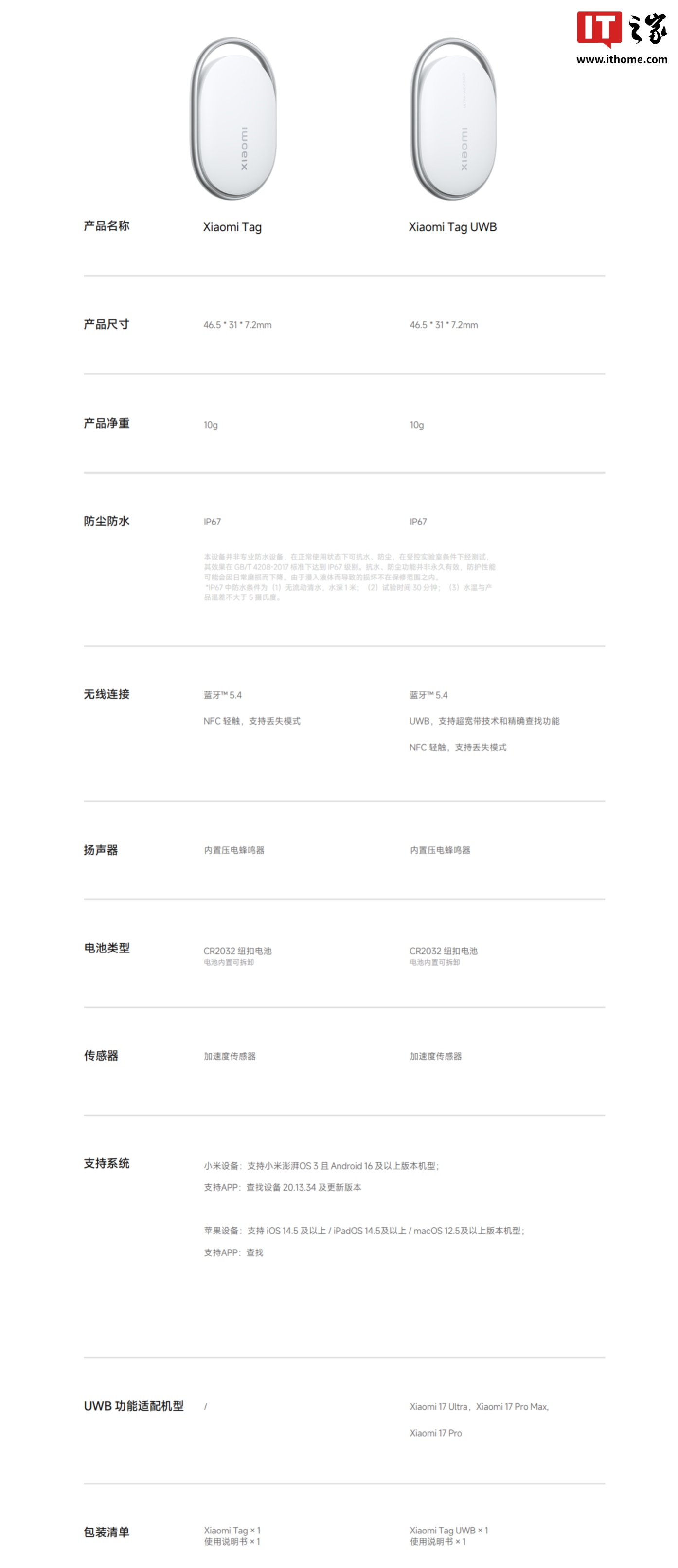 小米 Tag 追踪器完整参数公布,UWB 版适配 Xiaomi 17 Ultra / Pro / Pro Max 机型小米UWBXiaomi Tag 追踪器Xiaomi Tag