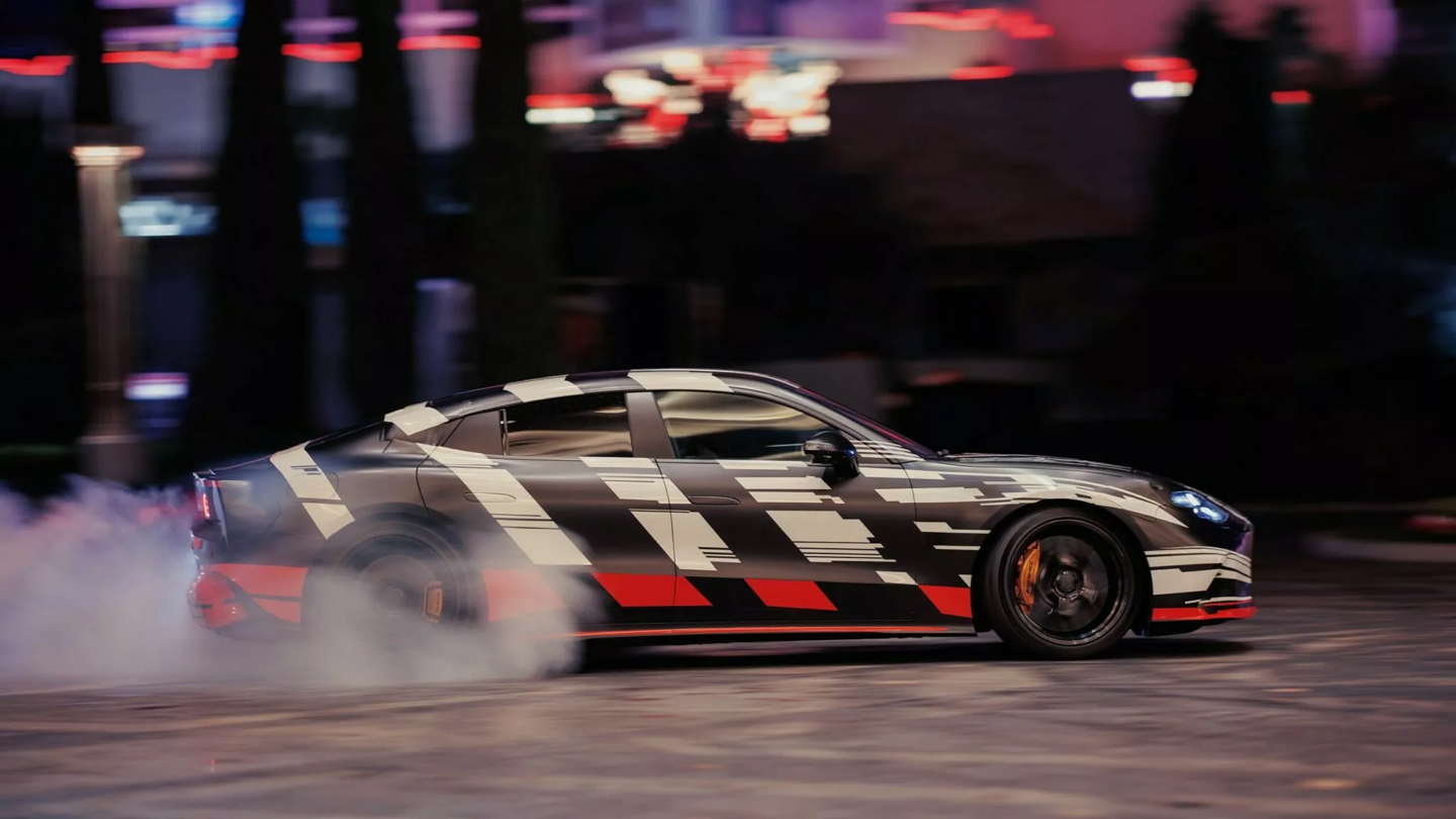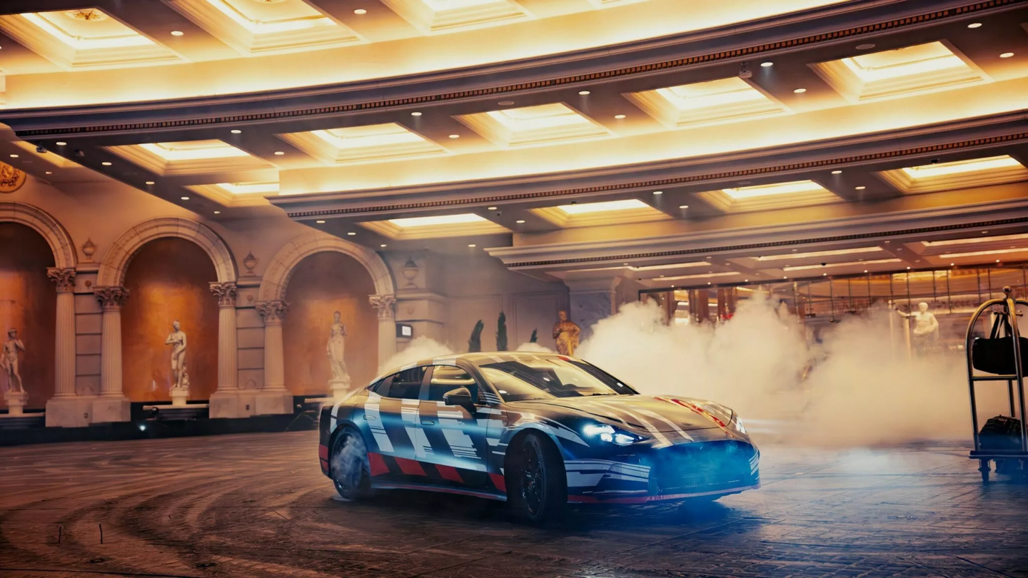 在本次活动中,AMG 带来了一辆带有轻度伪装的全新纯电 GT 四门轿跑原型车。F1 车手乔治・拉塞尔驾驶它穿越了拉斯维加斯著名的主干道。