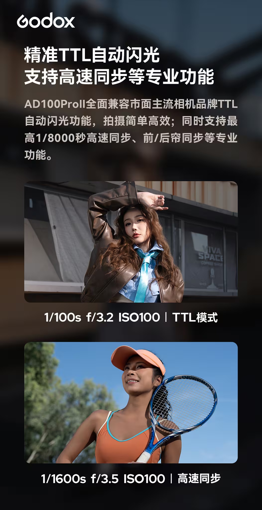 参数方面,这款闪光灯的最高输出功率可达 100Ws,适配户外拍摄等多种场景,延续前代的紧凑造型设计,可轻松放入摄影包,兼容市面主流相机品牌的 TTL 自动闪光功能,支持 1/8000 秒高速同步、前后帘同步等专业功能。