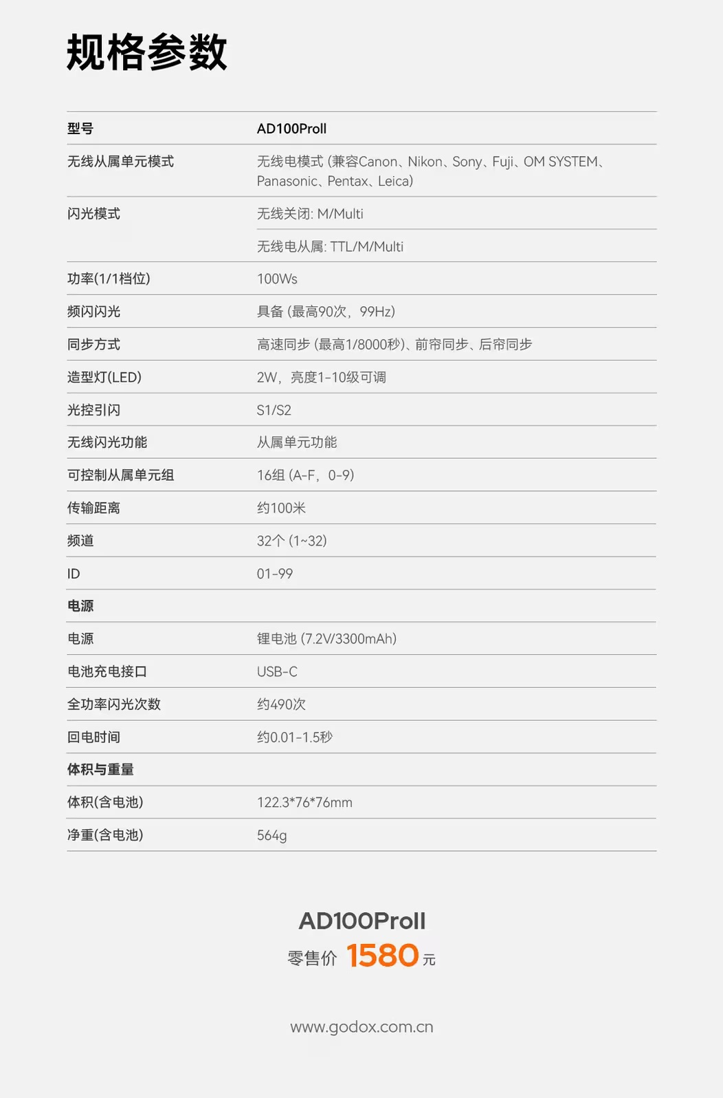 神牛发布 AD100 Pro II 闪光灯:全功率连闪次数可达 100 次、配备中文菜单,1580 元神牛闪光灯AD100 Pro II