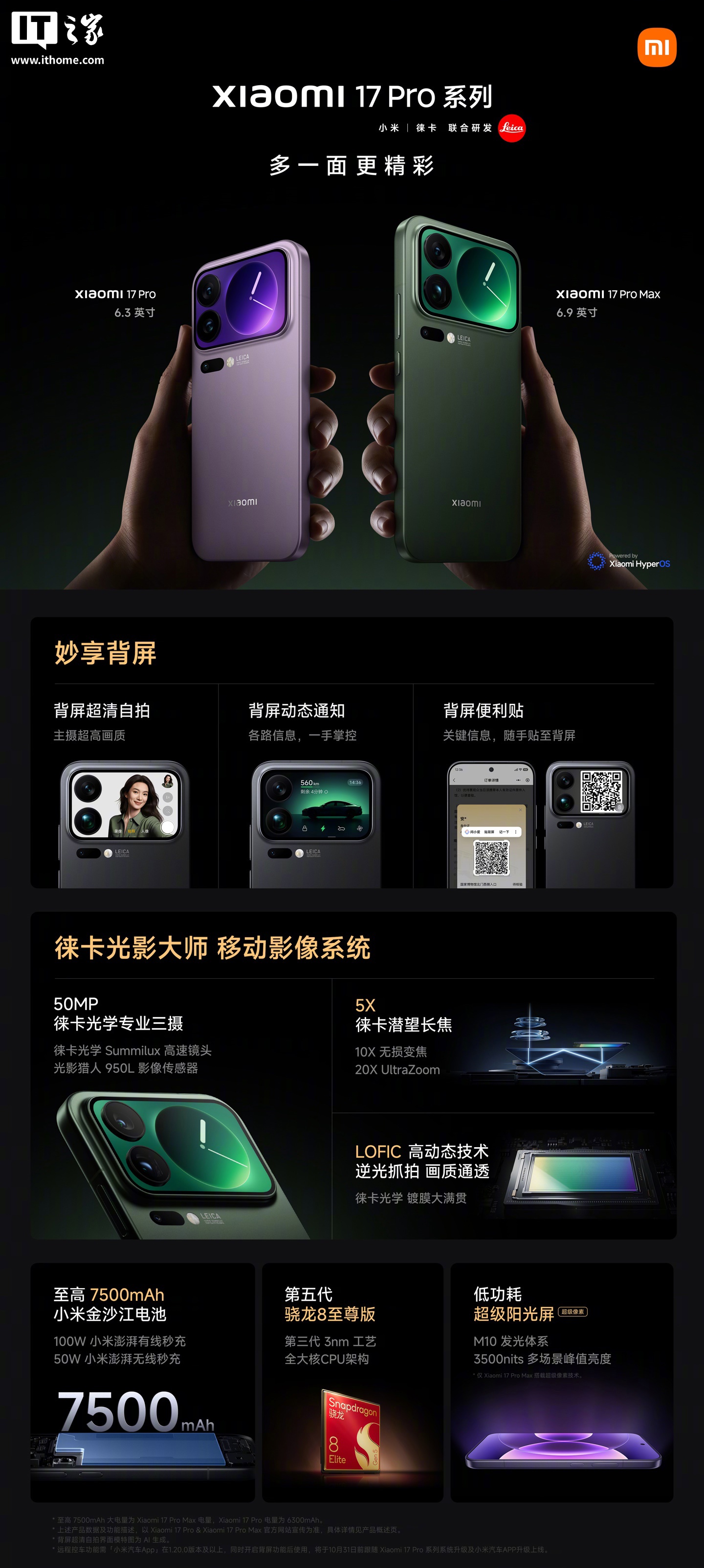 小米 17 Pro 手机 2025 年 9 月 25 日发布,16GB+1TB 定价 5999 元。