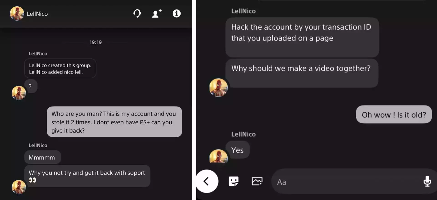 之后他只能尝试自救,先是新建了一个 PlayStation 账号,然后给原来的大号发消息。