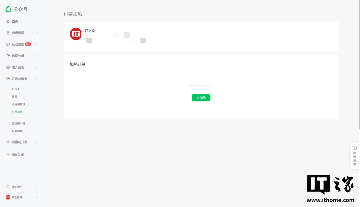 12 月 24 日消息,微信公众号现已正式上线“付费加热”功能,创作者可以在公众号后台访问“付费加热”模块,选择已经发布的内容进行加热推广。