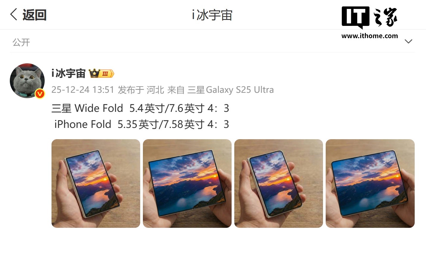 数码博主 @i冰宇宙 昨日(12 月 24 日)发布微博,分享了一组渲染图,对比了三星 Wide Fold 和苹果 iPhone Fold 两款“阔折叠”手机,揭示了两大科技巨头在折叠屏领域的最新博弈。